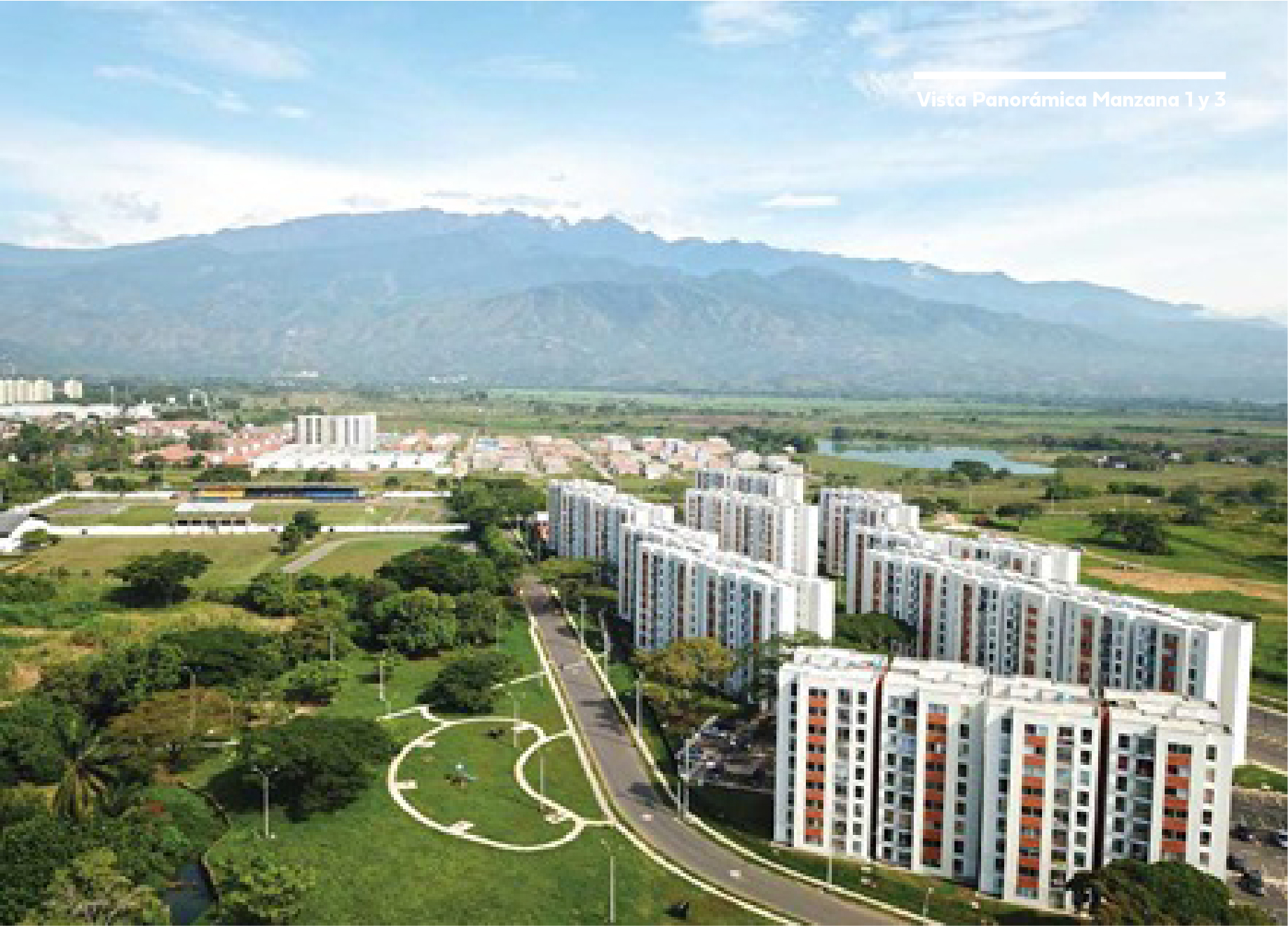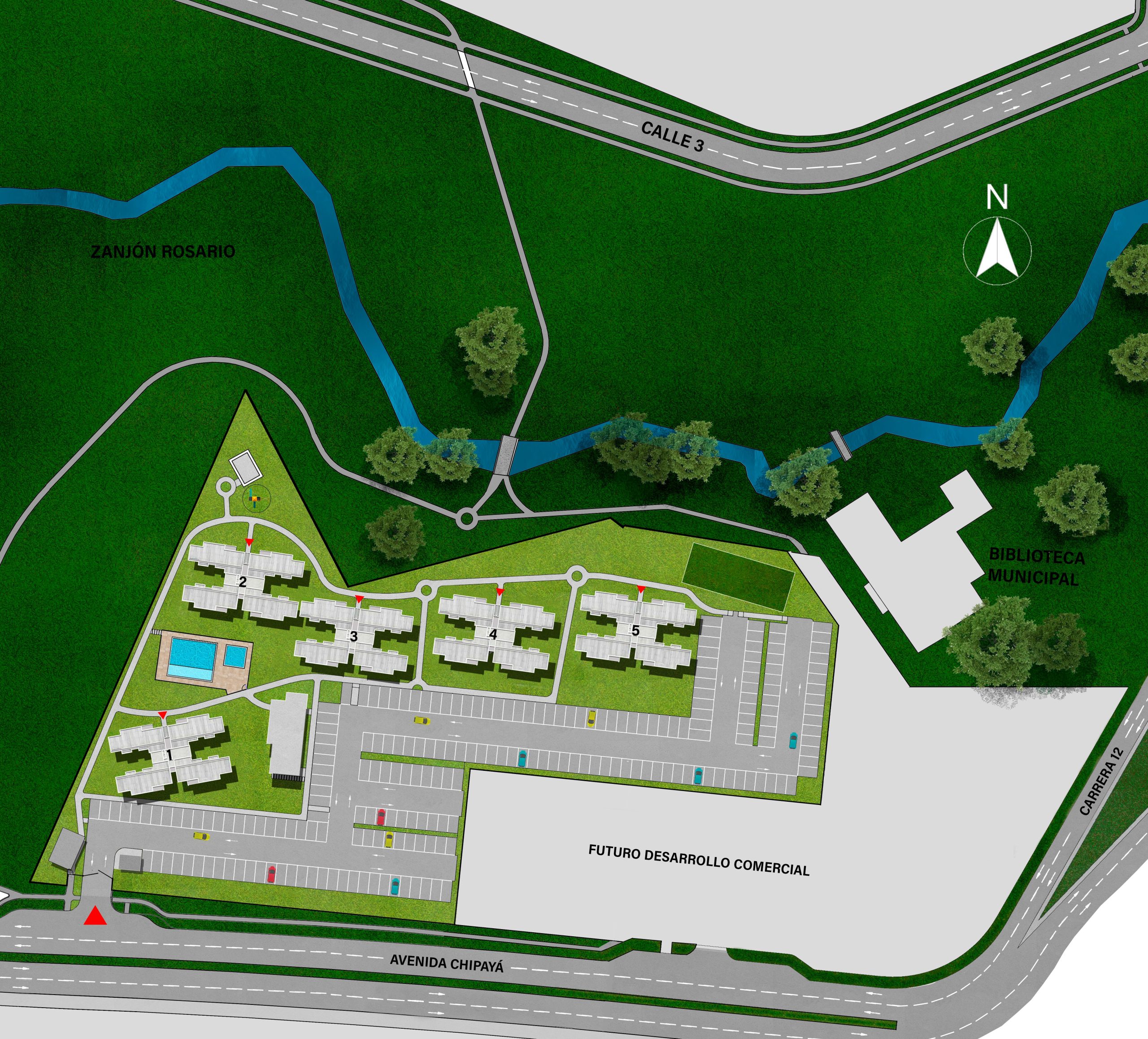 Los Naranjos es un desarrollo de Apartamentos Campestres diseñado con prácticas del nuevo urbanismo que ubica los edificios y sus conjuntos entorno a las zonas verdes, interconectándolos por medio de senderos peatonales y dejando los espacios de vías independientes.