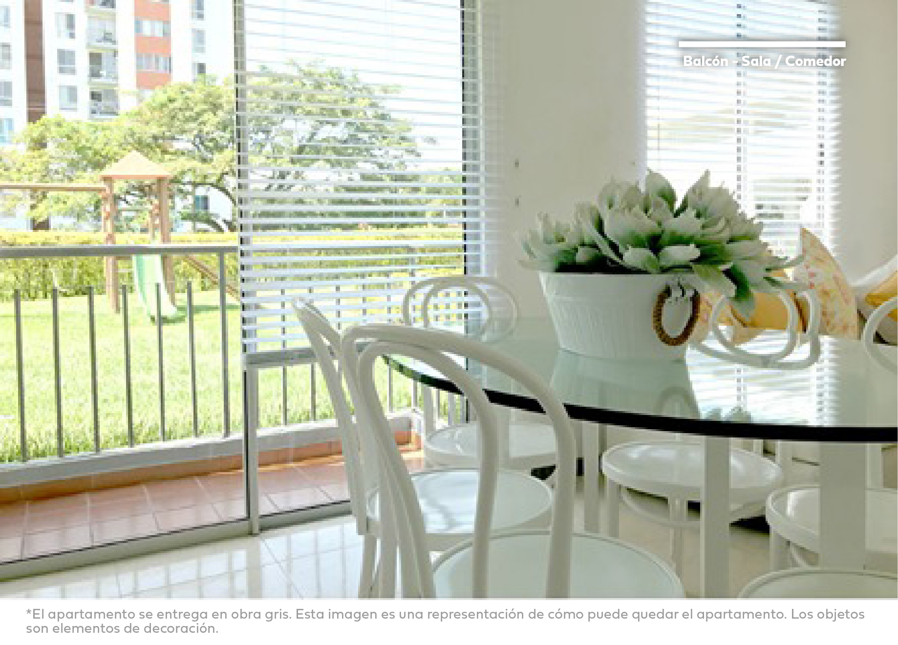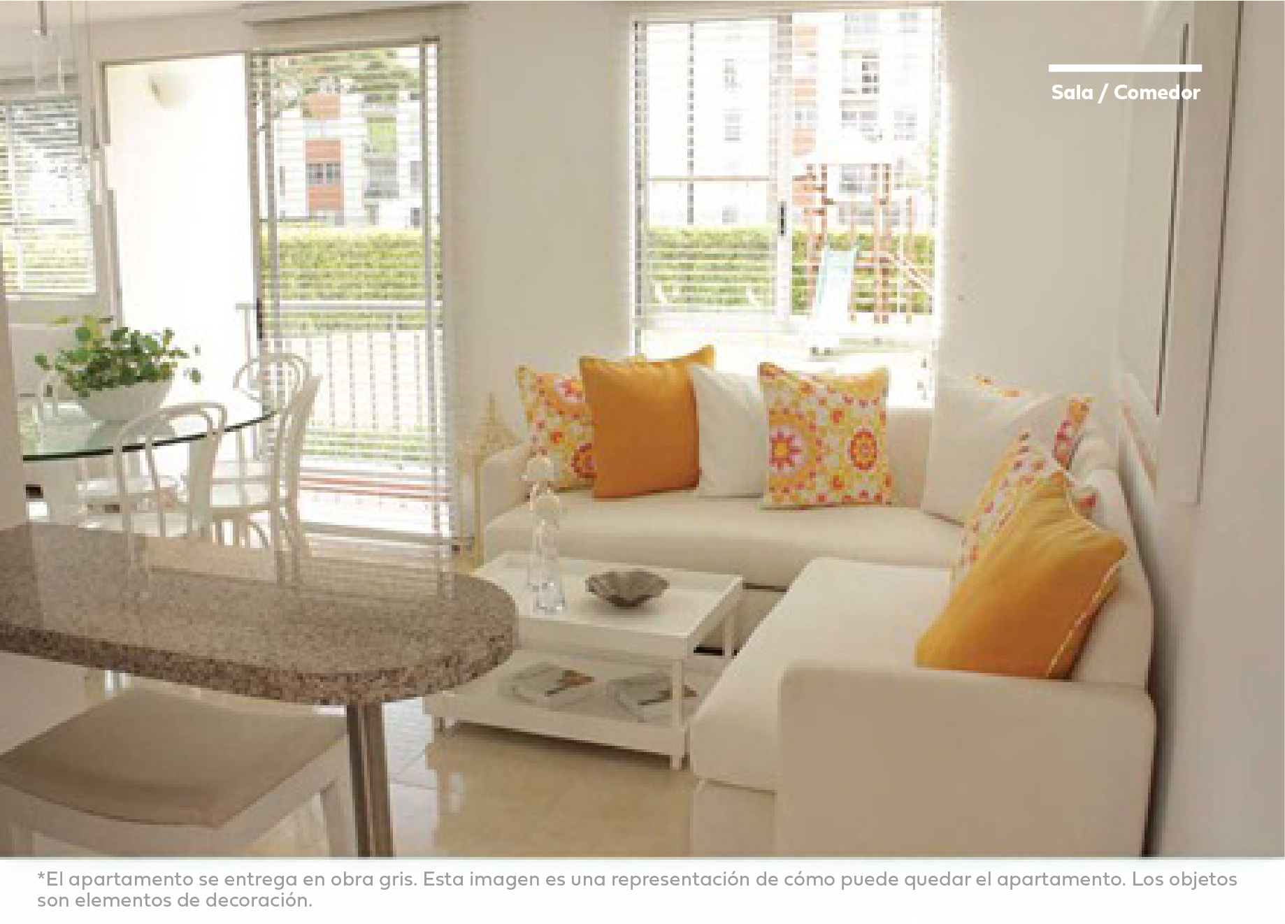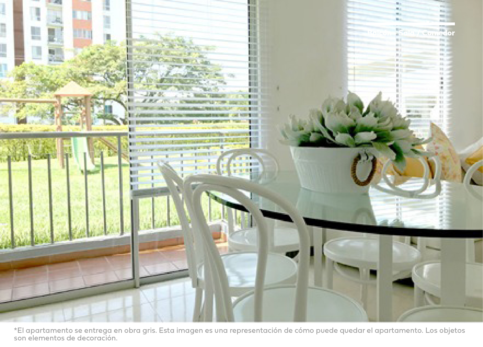 *Las imágenes son representaciones artísticas del proyecto, los detalles de diseño, colores, especificaciones de materiales, precios y en general la información contenida están sujetas a modificación sin previo aviso en el proceso de desarrollo arquitectónico y constructivo. Los elementos ilustrados en la planta son decorativos. Las áreas especificadas son libres internas y están sujetas a modificaciones. El proyecto se desarrollará por etapas y conforme a estás, sometido a régimen de propiedad horizontal.